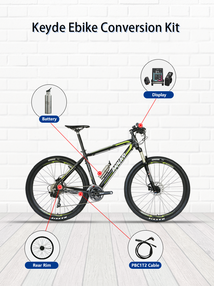Keyde S100 smart rear rim ebike conversion kit has a built-in controller and sensor, and the electric bike conversion kit with 7/10.5/15Ah battery. The 36V 250W ebike kit is silent, the max power is 300W, it includes OLED130/TFT350 Display and PBC1T2 cable.
