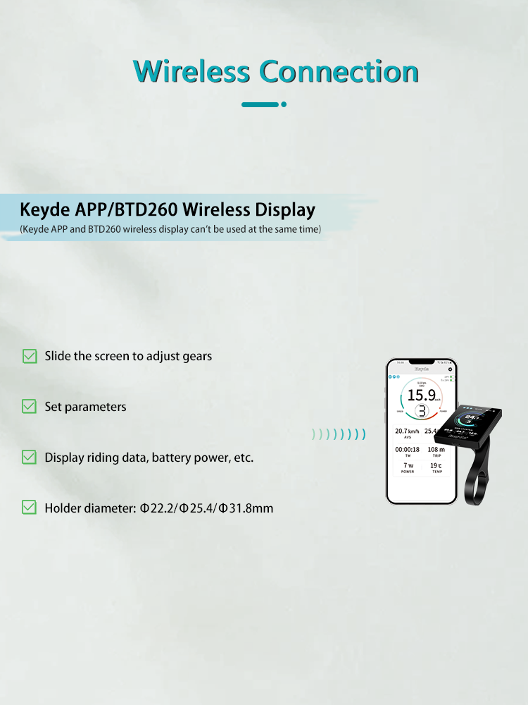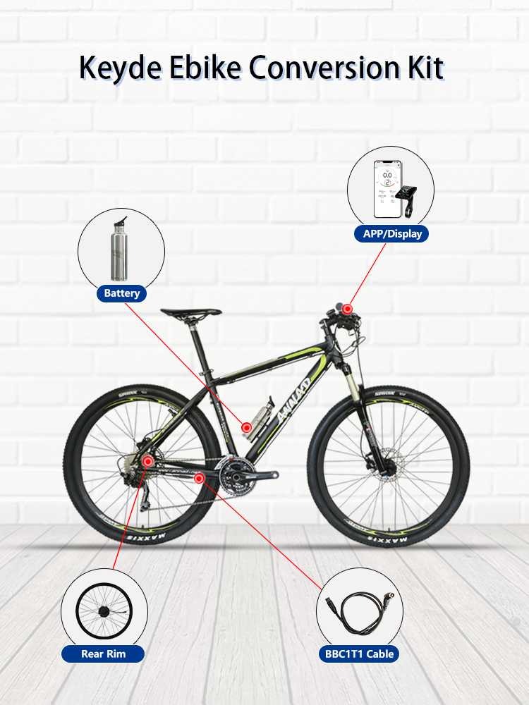 Keyde S110 wireless rear rim ebike conversion kit has a built-in controller and sensor, and the electric bike conversion kit with 7/10.5/15Ah battery. The 36V 250W ebike kit is silent, the max power is 500W, it includes BTD260 wireless display and BBC1T1 cable.