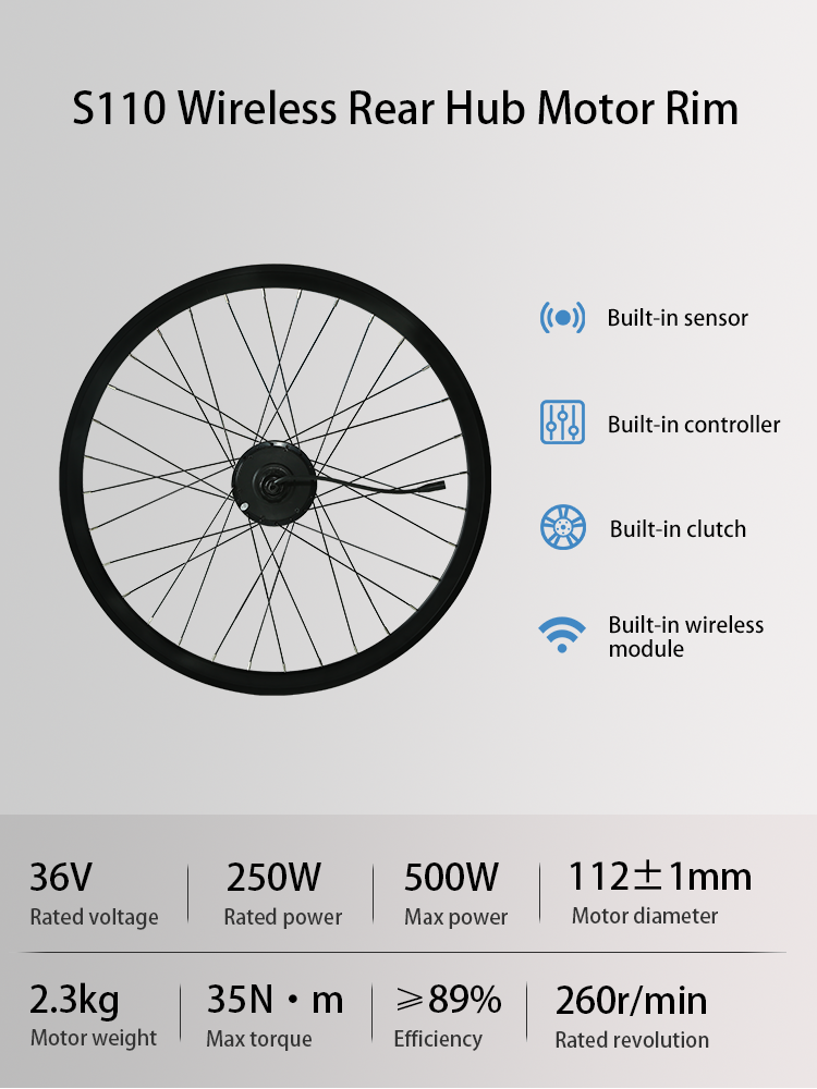 S110 Wireless Rear Rim Ebike Conversion Kit, 36V 250W Silent Electric Bike Conversion Kit